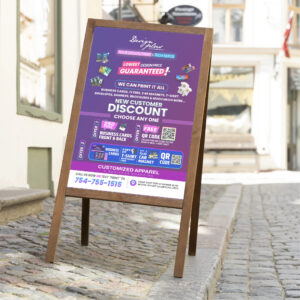 Our Deluxe sidewalk signs are equipped with a patented feature, which allows signs to easily slide in and out and also with Stay Tabs which ensure signs stay securely in place. Pair this stand up with up to two 24″W x 36″H 4mm Coroplast signs. The Deluxe Sidewalk Signs are made out of durable plastic […]