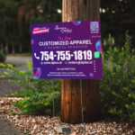 Lawn signs are a great way to promote a fundraising event, a new business opening, a going out of business sale, a local event, political campaign, etc. Printed on corrugated plastic, our signs are weather resistant and can be used both indoors or outdoors. They can include stakes if needed. Send us your artwork.
